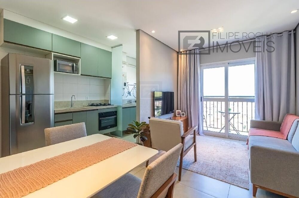 - Sala integrada à cozinha, criando um ambiente moderno e acolhedor